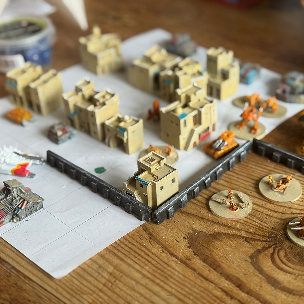 A small tactical/war board game which has simple rules, can be set up quickly and which takes only 10 minutes to play. The rules are heavily inspired by Bob Cordery‘s The Portable Wargame. I am using 6mm models from Full Spectrum Dominance but any scale, models and theming can work. Just grab your favorite minis and give it a go.
